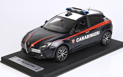 Solido ( OttOmobile group) die-cast 1:18: bracht de straat versies van de Alfetta GTV6 al uit in rood, zwart en de ‘Rothmans’ Tour de Corse. Met €uro 40,00 , voordeliger dan andere resin-cast in deze schaal. Nieuw is de 4e kleur.