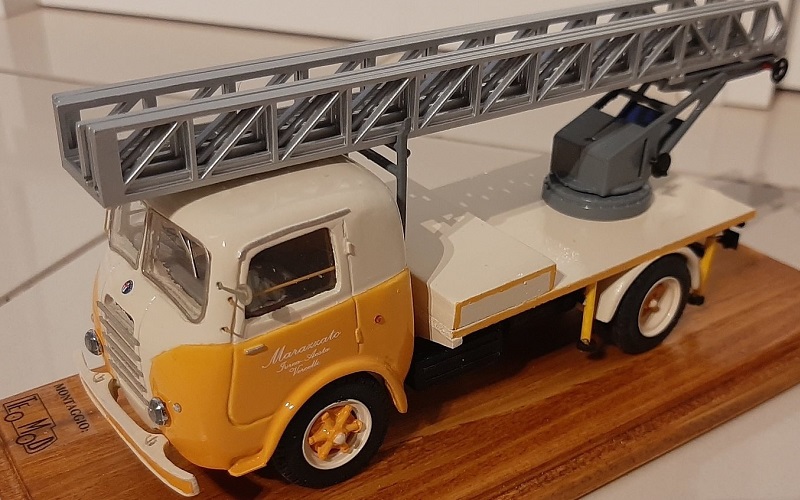 Teo Mod resin handbouw 1:43: Matteo Nava uit Monza is verzamelaar en zelfbouwer van vrachtwagens. Op kleine schaal maakt hij eigen series van Gila Modelli. Nieuw bouwde hij de afgelopen maand een Alfa 455 autoscala, een ladderwagen van Marazzato uit Aosta.
