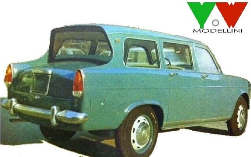 Opvallend is de daklijn en de recht opstaande achterruit, die we in die tijd ook zagen bij de Ford Anglia. Een Colli Ministeriale 1959 (geen Ti) 6 posti met een conventioneel dak werd door Gulp Model Marco Sambataro jaren geleden uitgebracht.